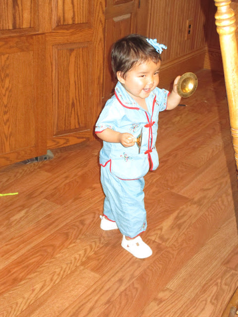 ReplyDeleteWhen she is this stinkin cute she can get away with MOST anything! I think the cymbals would mysteriously disappear in this house though. (: